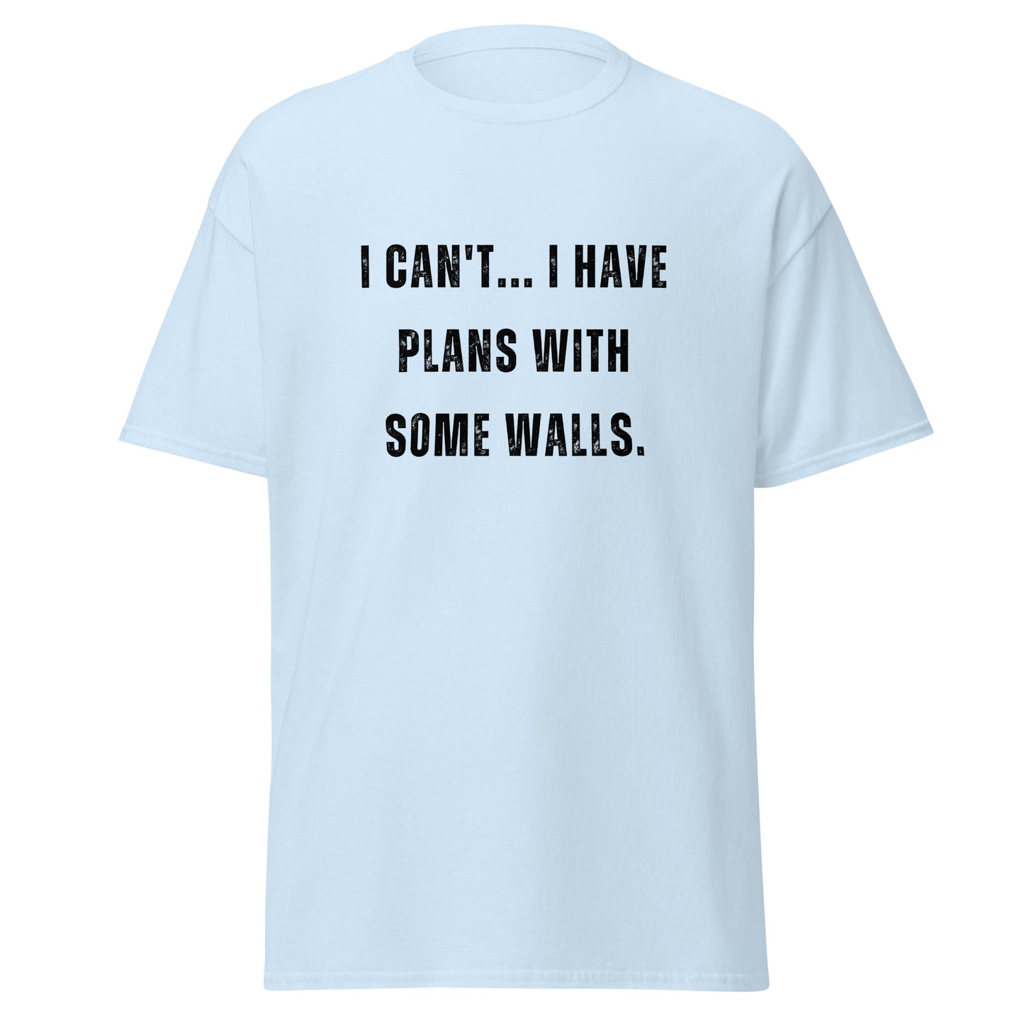 This 100% cotton classic tee is perfect for the dedicated painter. Featuring the witty phrase, "I can't. I have plans... with my some walls" this t-shirt is sure to bring a smile to anyone who understands the commitment to getting walls just right. Whether worn on the job or off, it's a great gift for those who take pride in their painting skills.